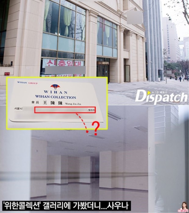 디스패치는 왕진진에게 명함을 받은 후 명함 속 주소지를 직접 방문했는데, 주소지 건물에는 아무것도 없었고, 위한컬렉션이라는 회사도 등기되어 있지 않았다고 합니다.