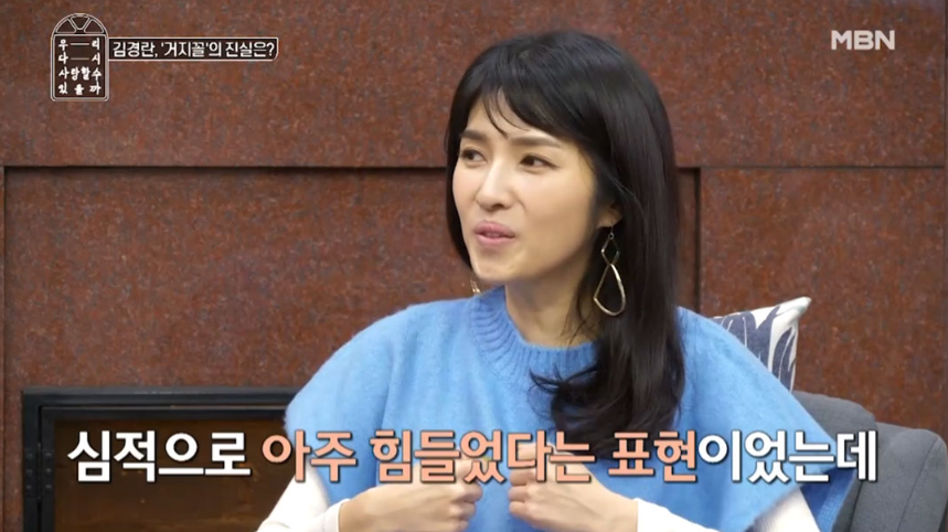 이어 김경란은 나만 버티고 견디면 다 괜찮을 것이라는 생각에 버티고 참기를 지나칠 정도로 반복했다. 그러다 완전히 부서졌다. 사람들은 나를 지적으로 차분한 이미지라고 생각하지만, 개뿔 아무것도 없는데라며 힘든 속내를 밝혔습니다.