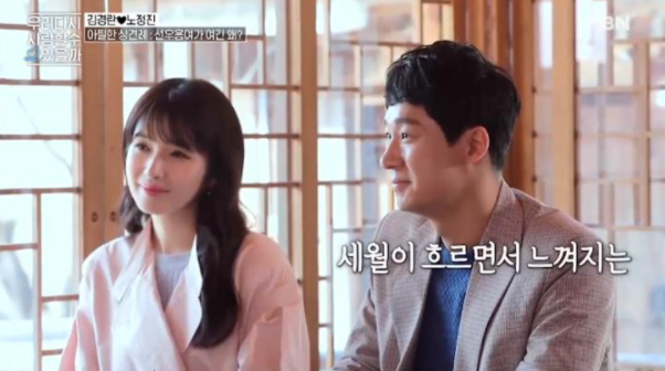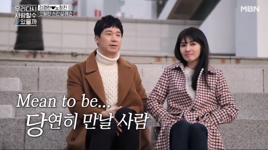김경란은 '우리 다시 사랑할 수 있을까 2‘를 통해 버클리 음대 출신에 재즈밴드 프렐류드의 멤버 겸 광운대학교 교수로 재직 중인 노정진과의 만남으로 주목을 받기도 했는데요. 방송에서 노정진은 "경란 씨가 지난 몇 년 동안 많이 어두웠던 것 같다. 많이 웃게 만들어서 아픔을 씻어내고 싶다, 요즘엔 마음 놓고 연락 중"이라고 진심을 드러내기도 했습니다.