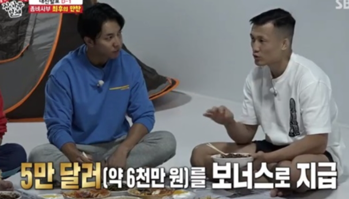 정찬성은 자신의 대전료에 대해 2019 10 '집사부일체'에 출연하여 밝히기도 했는데요. 인기로 대전료가 책정되고 자신이 높은 편에 속한다고 하며 최고 퍼포먼스를 보인 선수에게 보너스가 지급되는데 7번 시합에서 모두 보너스를 받고 시합 때마다 6000만 원이라고 했습니다.