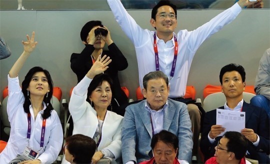 아버지 이건희도 상당히 무뚝뚝한 편인데 두 딸들에게는 자상한 아빠로 잘 알려져 있는데요. 아들 이재용도 딸을 바로 보는 다정한 눈빛과 미소로 딸바보 아빠를 인증해주었습니다.
