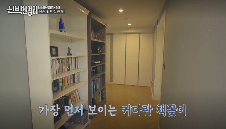 신애라는 다른 물건에 대한 소유욕은 없는편이지만 책에 대한 욕심은 많은편이라고 해요. 책이 더 많았는데 저것도 많이 정리한 편이라고. 2010년 이전에 책은 다 처분하고, 꼭 간직하고 싶은 책만 남겨두었다고 합니다.