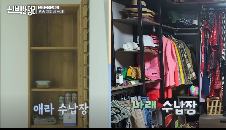 박나래 냉장고와 극과 극의 비교 사진입니다. (신박한정리 수납장 차이도 극과 극!)