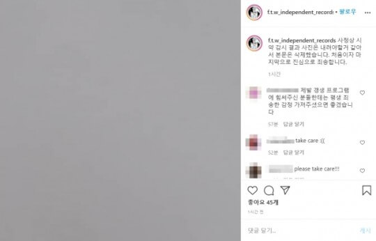 윤병호는 이후 해당 글과 사진을 삭제했는데요. 다시 글을 올리면서 “사정상 시약 감시 결과 사진은 내려야 할 거 같아서 본문은 삭제했다”며 “처음이자 마지막 진심으로 죄송하다”고 말했습니다. 이 게시물은 윤병호의 공식 계정에 올라온 것이 아니라는 점에서 네티즌 사이에서 진위여부 논란도 불거진 상태입니다.