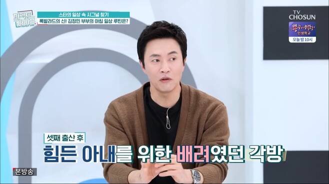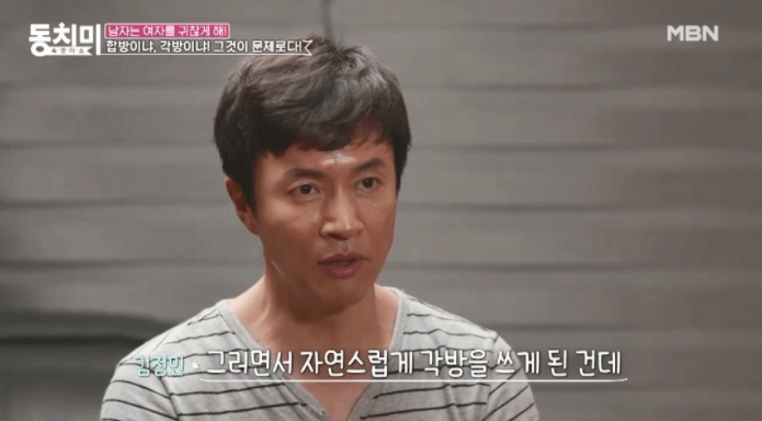김정민은 "코로나19 때문에 집에 있는 시간이 길어졌다. 분명 가사 노동은 아내 루미코가 더 많이 하는데 내가 힘들고 되게 피곤하다","지적도 받고 체력을 만들어서 아내를 도와주고 싶다"며 출연 이유를 밝혔습니다. 이에 홍경민은 김정민에게 "목표가 최수종이냐?"며 놀렸는데요. 김정민은 "질문에 이렇게 해야 반찬이 잘 나온다"며 너스레를 떨었습니다.