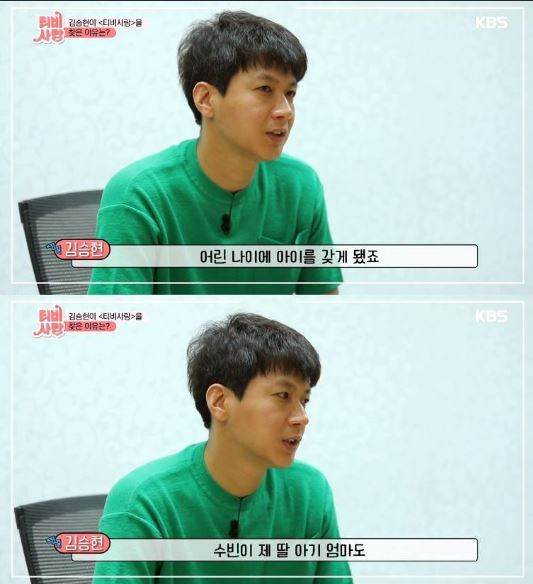 당시 고등학생으로 어린 나이였던 김승현은 양측 부모님 간의 갈등으로 인해 수빈이의 엄마와 헤어질 수밖에 없었다고 아쉬운 사연을 전했는데 김승현은 [수빈이가 있다는 게 밝혀지면 연예계 생활을 못 할까봐 처음에는 딸인 수빈이를 동생으로 호적에 올렸다고 전하면서 내 딸인데 어떻게 동생으로 호적에 올릴 수 있느냐]고 부모님과 많이 싸웠다고 밝혀 안타까움을 자아냈다.