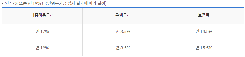 이 금리중 은행에서 받는 금리는 연 3.5%이며, 나머지는 국민행복기금 보증료율로 납부하는 것이니 참고하시길 바랍니다.