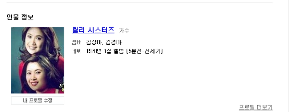 참고로 리리시스터즈(릴리시스터즈)는 김성아(언니)와 김경아(동생)이라는 일란성 쌍둥이 자매로 이루어진 팀이었습니다.