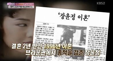 1994년 첫 번째 결혼에 골인했으나 3년 만에 이혼했다. 장윤정은 1987년 미스코리아 진에 뽑힌 후 방송활동을 활발히 하다 1994년 결혼 소식과 함께 연예계를 은퇴했다.