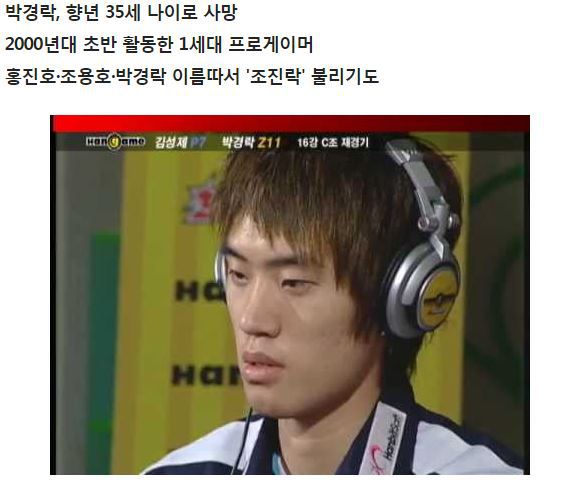프로게이머 박경락이 향년 35세로 사망했다. 박경락은 지난 29일 사망한 것으로 전해졌다. 그런데, 박경락의 정확한 사망이유는 알려지지 않았다.
