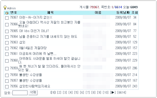 방송이 끝난 다음에는 염정인의 방송사고급 막말을 비판하는 글로, 아침마당 게시판이 가득차게 됩니다.