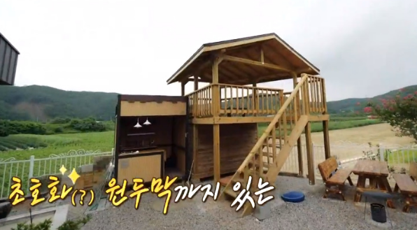 아름다운 풍경과 함께 대저택에 딸린 텃밭에서 직접 고추, 수박, 참외, 토마토 등을 기르고 있는데요. 텃밭에 있는 2층 원두막도 무척 럭셔리하네요.