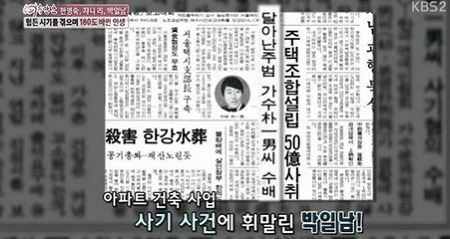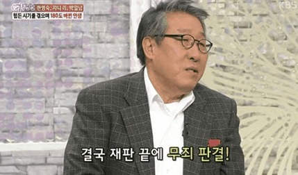 <사기 혐의로 6년간 도피 생활을 한 적이 있다. 당시 가수들을 위해서 연예인 아파트를 짓는데 하청 달라는 이들이 나타났다. 그런데 불화로 부도가 났다. 변호사에게 물어보니 7년만 피해 다니면 된다고 하더라. 근데 6년 만에 잡혔다. 결국은 무죄로 밝혀졌다>