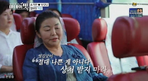 송가인의 어머니 송순단은 송가인이 어릴 적에 어머니가 ‘무속인’이라는 상처를 받고 왔을 때는 “ 엄마도 굿을 하려면 목욕하고 정성기도를 올리고 버선까지 다려서 해야 한다. 절대 나쁜 것을 하는 게 아니다. 상처받지 말아라”라고 하셨다고 하네요.