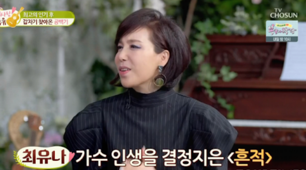 최유나는 오랜 무명 시절을 겪으며 가수의 꿈을 접고 외국에 나가서 자신의 전공인 의상 공부를 할까라고 생각했었다고 하는데요. 그런 그녀에게 ‘흔적’이라는 곡으로 당시 최고의 전성기를 누리게 되면서 현재까지 꾸준하게 음반 활동과 콘서트 등으로 활발하게 활동 중입니다.