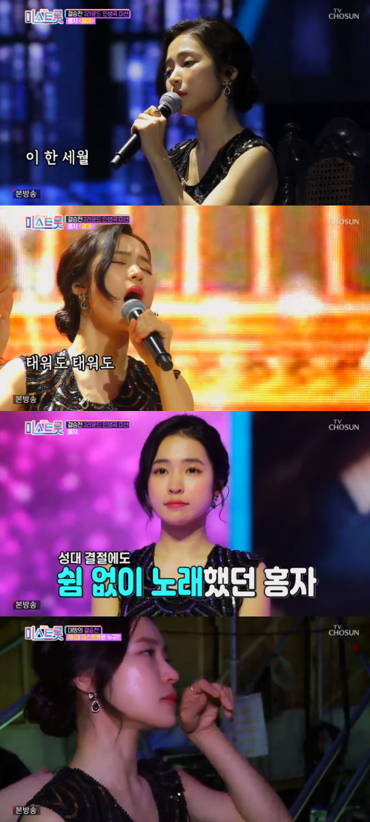 사실 홍자는 미스트롯 참가자 중 정미애와 함께 송가인을 잡을 수 있는 유일한 대항마였다고 하는데요, 결승전 당시 생기고 만 성대결절로 인한 음이탈이 마지막까지 발목을 잡아서 끝내 3위에 머물게 되었다고 하네요.