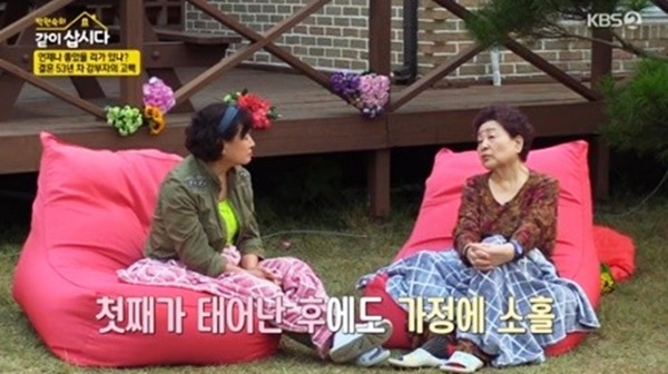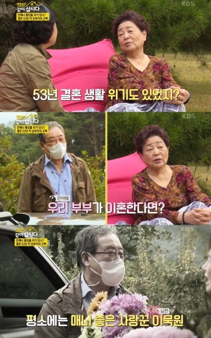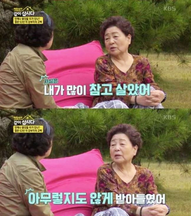 배우 강부자가 남편 이묵원과 54년 간의 결혼 생활 중 위기를 겪었던 순간을 털어놨습니다. 강부자는 위기를 이겨낸 비결에 대해 "참았다"고 답했는데요. 강부자는 "우리가 만약 깨지면 세상 사람들이 '그렇게 이묵원이가 많이 참았겠지', '강부자가 좀 극성 스러워?' 이랬을 것이다. 내가 너무 참는다"며 억울하다는 말을 했는데요.