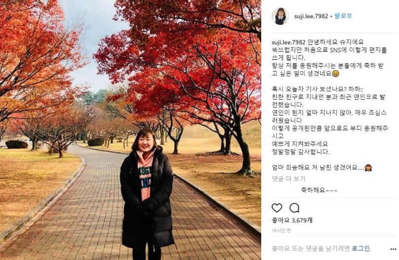 엄마에게 항상 미안한 마음을 갖고 있던 이수지는 2018년 열애설을 공식 인정하며 "엄마 죄송해요. 저 남친 생겼어요"라고 미안한 마음을 전하기도 했습니다.