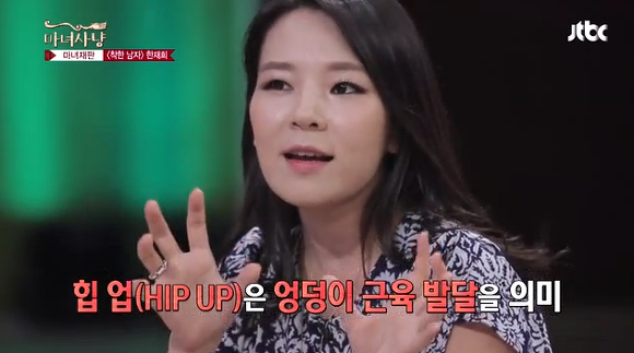 곽정은: "내가 만난 41살은 (엉덩이가) 힙업된 41살을 만나기가 너무 어려운데, 힙업된 31살을 만나기는 훨씬 쉬운 거에요. 힙업은 엉덩이 근육 발달을 의미하는 건데, 이것은 제가 한 이야기는 아닌데, 여자와 중요한 순간에서... 좀 더 강력한 힘을..."