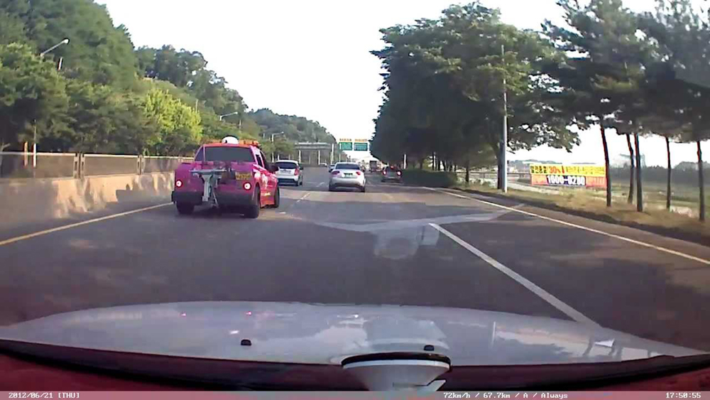 운전자는 갓길로 빠져나와서