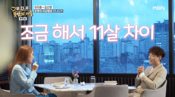 지난 9일 방송된 MBN '우리 다시 사랑할 수 있을까3-뜻밖의 커플'에서는 김선경, 이지훈이 가상 커플로 첫 만남을 갖는 모습이 그려졌습니다. 뮤지컬 선후배 사이인 두사람의 나이차는 김선경이 1968년 생 올해 53세, 이지훈이 1979년생 올해 42세로 11세차이가 나는데요.