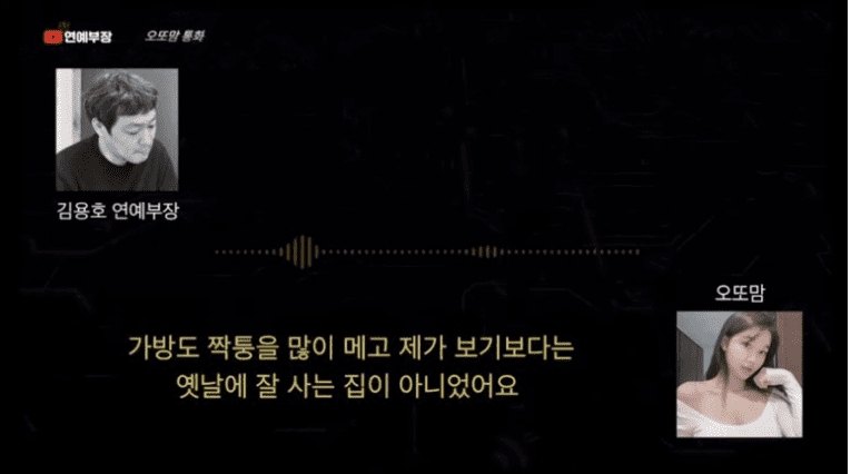 오또맘에 대해 "조건만남이다, 된장녀다, 스폰이다 등의 많은 소문이 있었고, 이에 대해 오또맘은 카톡으로 보내겠다고 했지만, 통화로 자신의 입장을 전달하는게 더 낫다는 생각이 들어 김용호 연예부장과 통화를 하게 된다.