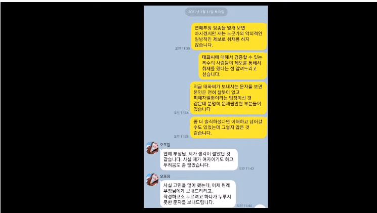 김용호는 오또맘에 대해 여러 제보를 받았다고 한다. 오또맘은 자신의 제보에 대해 사실을 말하고 싶다며 자신의 입장을 정리해서 카톡으로 보내겠다고 했다.