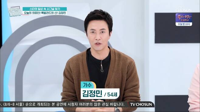 김정민은 "코로나19 때문에 집에 있는 시간이 길어졌다. 분명 가사 노동은 아내 루미코가 더 많이 하는데 내가 힘들고 되게 피곤하다","지적도 받고 체력을 만들어서 아내를 도와주고 싶다"며 출연 이유를 밝혔습니다. 이에 홍경민은 김정민에게 "목표가 최수종이냐?"며 놀렸는데요. 김정민은 "질문에 이렇게 해야 반찬이 잘 나온다"며 너스레를 떨었습니다.