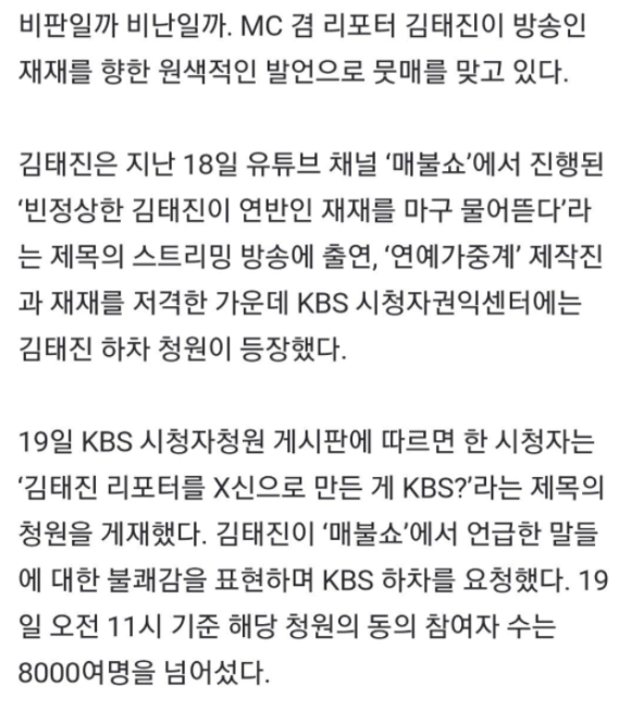 연예가중계 하차 청원까지 올라온
