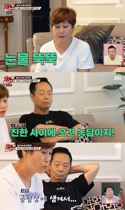 개그우먼 임미숙이 JTBC 예능 프로그램 '1호가 될 순 없어'에서 자신이 공황 장애를 앓게 된 사연을 털어놓았습니다.방송에 출연한 임미숙은 김학래에게 "내가 공황장애가 생기고 30년 동안 비행기도 못 타고, (당신이) 도박하고 바람 피우고 그러니까 내가 이 병 걸렸을 때 나 당신에게 이야기도 못 했다며 "10년 동안 사람들이 '왜 저렇게 아프냐'라고 해도, 당신은 알지도 못 했다. 말도 하기 싫다. 가슴이 찢어져서 그런다"고 고백했습니다.