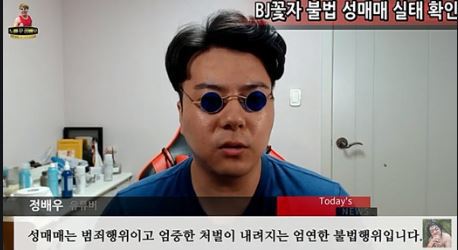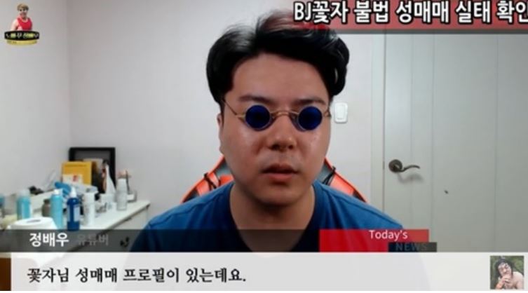 정배우는 꽃자의 성매매에 대한 증거로 2016년 2월20일 BJ세야의 유튜브에 올라온 영상을 예로 들었다.