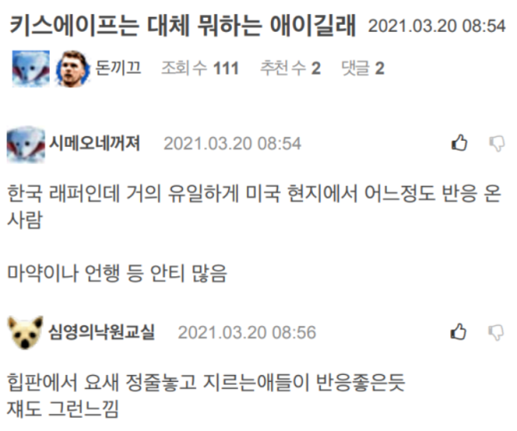 이후 누리꾼들과 키스에이프 동료들이 인스타그램 댓글을 통해 응원을 전했으며 이를 본 키스에이프는 "내 건강이 아니라 음악에 대해서 말해달라"는 답을 남겼다.기사