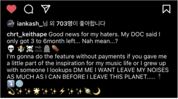 랩퍼 키스에이프 시한부 판정 논란 및 심경 고백