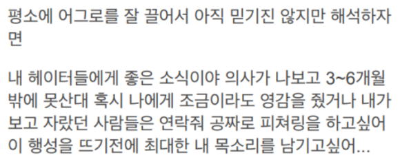 글에서 그는 “의사가 말하기를 내가 3~6개월 정도 남았다고 한다”고 밝혔다.