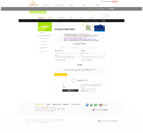 우선 문화누리카드 발급 인터넷 신청을 위해서는 아래의 링크를 통해서 문화누리카드 홈페이지 카드 발급 신청 사이트로도 접속해주시기 바랍니다. 그 후 공인인증서, 휴대폰 인증, 아이핀 인증 중 하나로 본인인증을 한 다음 이후 과정으로 이어가시기 바랍니다.