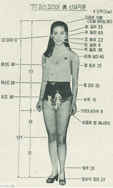 (참고로 한동안 김성희의 신체표를 가지고 미스코리아 대회에서 참가자들을 채점했을 정도임)