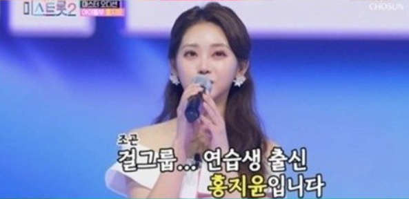 가수 홍지윤은 춘 엔터테인먼트의 연습생 출신으로, 여동생 홍주현과 함께 믹스나인에 참가하여 장윤정의 짠짜라를 불렀다고 하는데요. ‘미스트롯 2‘에서 자신을 소개할 때에도 "오디션 프로그램 '믹스나인'에서 아이돌 최초로 제가 혼자 트로트를 불렀다"라며 "반응이 좋았지만 다리에 마비가 와 활동할 수 없었다"라고 털어놓았습니다.