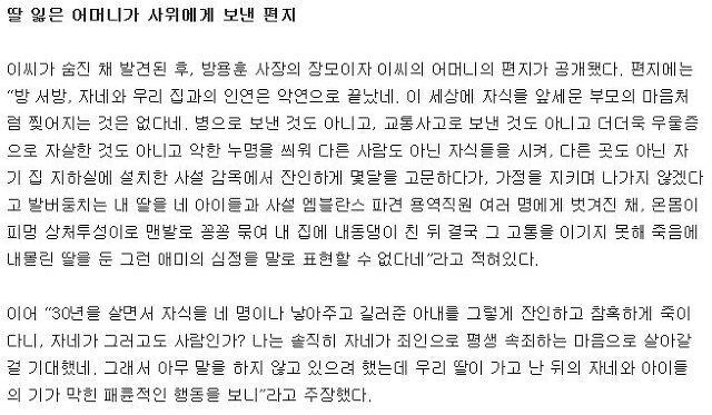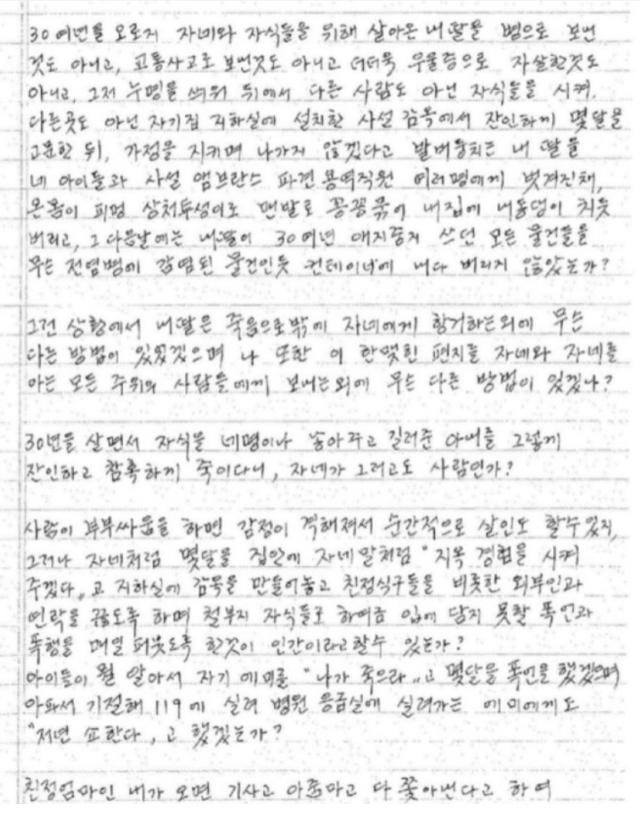 장모님이 사위에게 쓴 마지막 편지의 내용을 보면