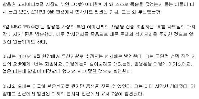 이미란씨가 자살하기 전 4개월 간 방용훈 사장이