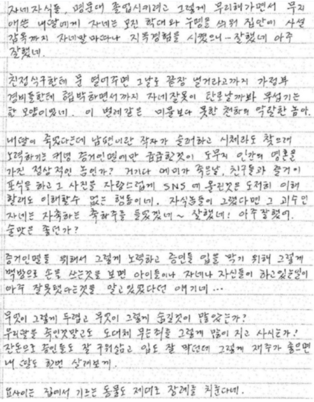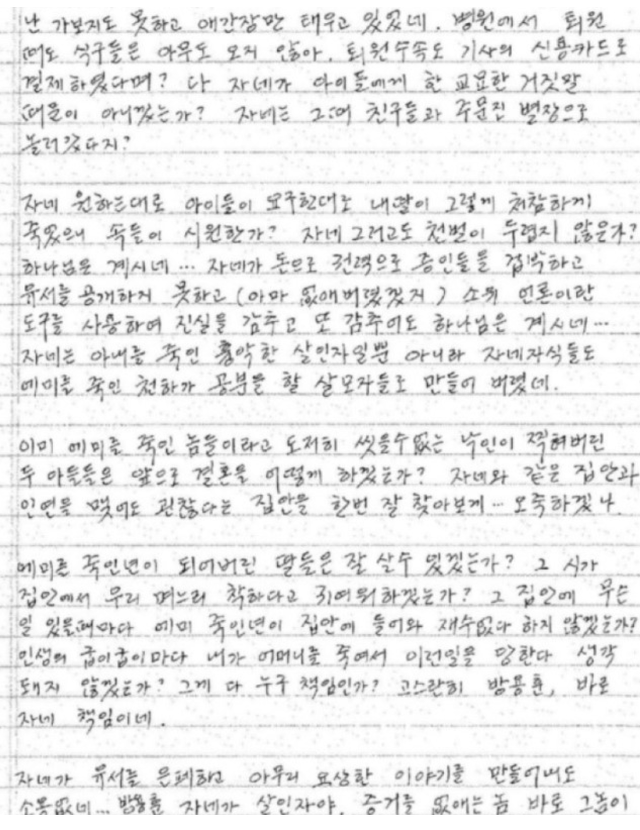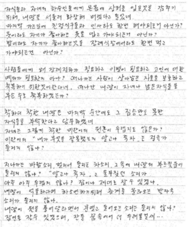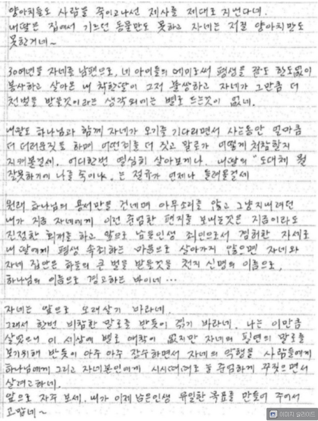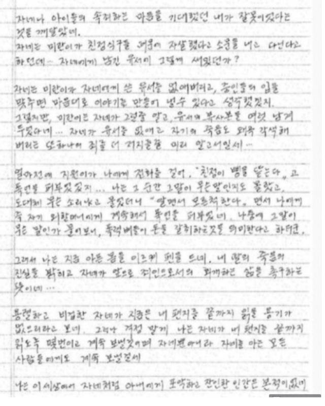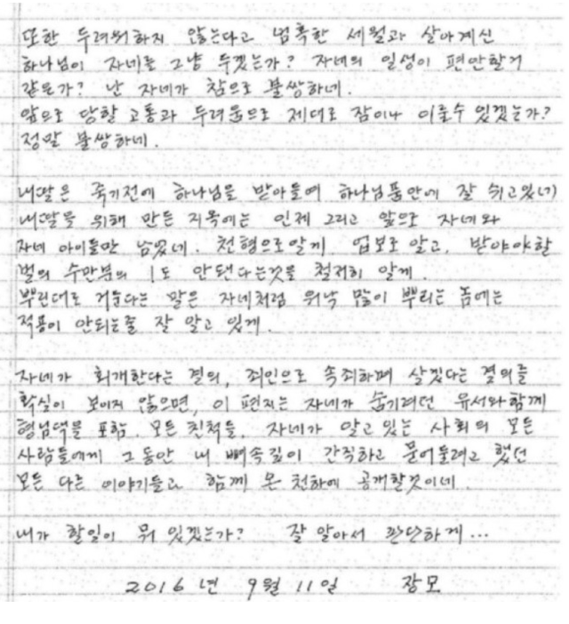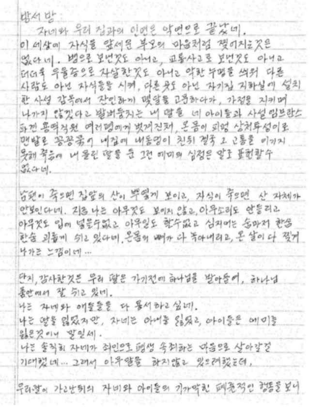 장모님이 사위에게 쓴 마지막 편지의 내용을 보면