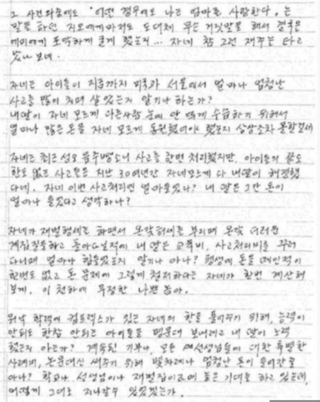 방용훈의 장모 이미란씨의 어머니가 쓰신 편지 첨부해 봅니다...