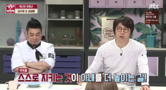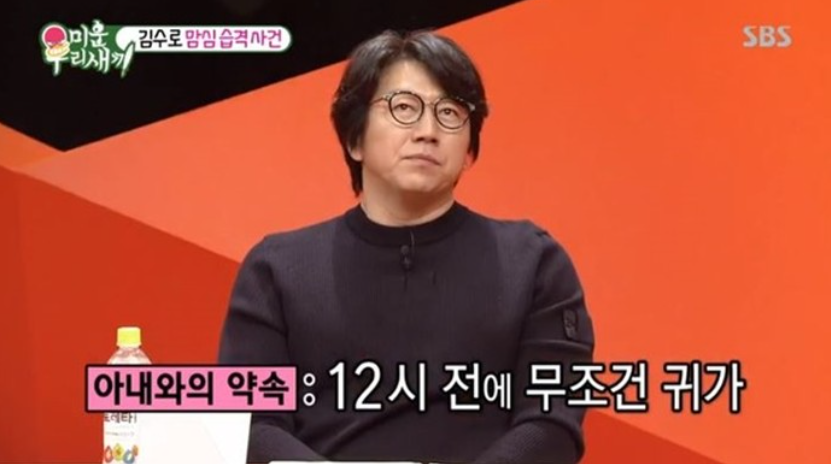 김수로는 결혼 후 일이 없을 때는 무조건 12시 전에 귀가하기로 약속하고 지금까지 지키고 있다고 하며 “들어가면 물론 아내는 자고 있다. 그러나 이건 누구 때문에 지키는 것이 아니라 나 스스로 지길 때 아내가 더 올라가는 거다”라며 “내가 올라가려고 맞추는 건 아니다”라고 설명했습니다.