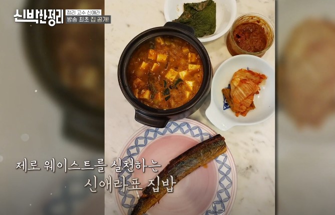 신애라 가족은 평소 식사도 참 조촐하고 간단하게 하는 편인것 같은데요. 건강한 재료로 소박하고 먹을수 있는만큼만 만들어서 먹는다고 합니다. 제로 웨이스트를 실천하고 있는 신애라표 집밥입니다.