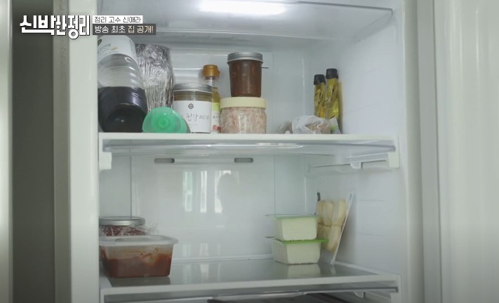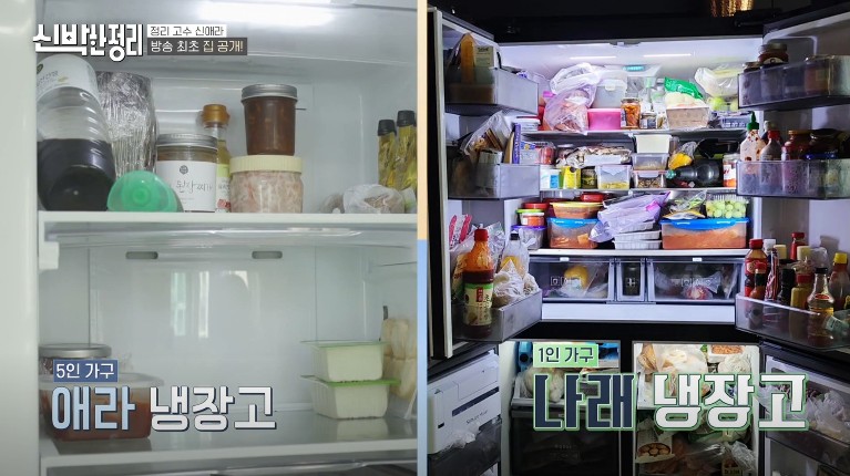박나래 냉장고와 극과 극의 비교 사진입니다. (신박한정리 수납장 차이도 극과 극!)