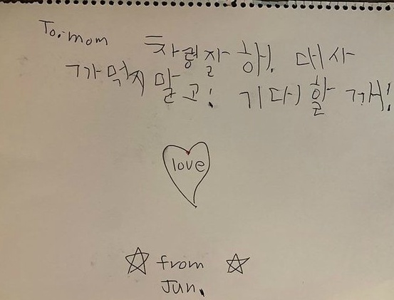 공개된 사진에는 이민정의 아들 준후군이 엄마에게 "To. Mom(엄마에게). 차령(촬영) 잘해. 대사 까먹지 말고! 기대할깨(게)! LOVE(러브). From Jun(준으로부터)"라고 쓴 귀여운 손편지가 담겨 있어 눈길을 끌기도 했습니다.