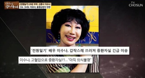배우 이수나는 원로배우 중의 한 명으로 전원일기를 통하여 큰 인기를 끌었고, 2010년대 초반까지만 하더라도 다양한 프로그램 드라마, 예능에 출연을 하며 좋은 모습을 보여주었습니다.