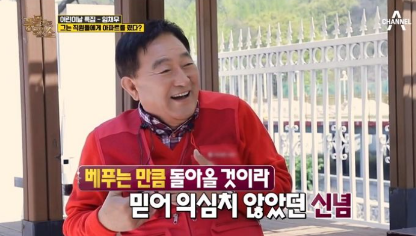 임채무는 과거 80년대 최고의 전성기를 누렸을 때 두리랜드 직원들에게 ‘3년 근무 시 아파트를 사주겠다’라고 약속해 “18평짜리 아파트를 26명의 직원에게 선물했다”라는 사실이 알려졌는데요. 아파트 명의까지 직원들 앞으로 했다고 하며 자신은 “매일 하루하루를 최선을 다해서 열심히 살 뿐이다”라고 소신을 밝혔습니다.