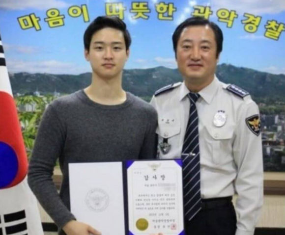 사실, 장동윤은 편의점 흉기 강도를 검거하는데 기여한 공로를 인정받아 경찰 표창을 받았고, 이때 뉴스 인터뷰 영상이 계기가 돼 데뷔한 케이스입니다. 연예인의 데뷔 사연 중 상당히 독특한 사례로 거론되곤 합니다.