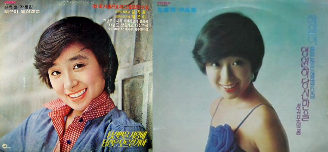 그 인기로 1077년 10대 가수상, 가수왕, 최고 인기사수상등 3사의 대상을 휩쓸게 되면서 1982년을 제외한 1983년까지 MBC10대 가수상, KBS 가요톱텐 골든컵 수상을 하게 됩니다. 혜은이의 인기는 노래뿐 아니라 영화계에도 진출하여 성공했으며, 광고모델, DJ 등으로 도 그녀의 인기는 계속되었습니다.