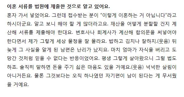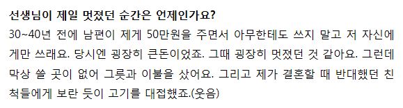 정말 여자가 봐도 대단한 여자인 전영자씨의 인터뷰 내용이에요.